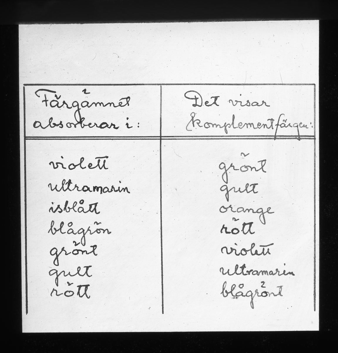 Skioptikonbild från Institutionen för fotografi vid Kungliga Tekniska Högskolan. Använd av professor Helmer Bäckström som föreläsningsmaterial. Bäckström var Sveriges första professor i fotografi vid Kungliga Tekniska Högskolan i Stockholm 1948-1958.