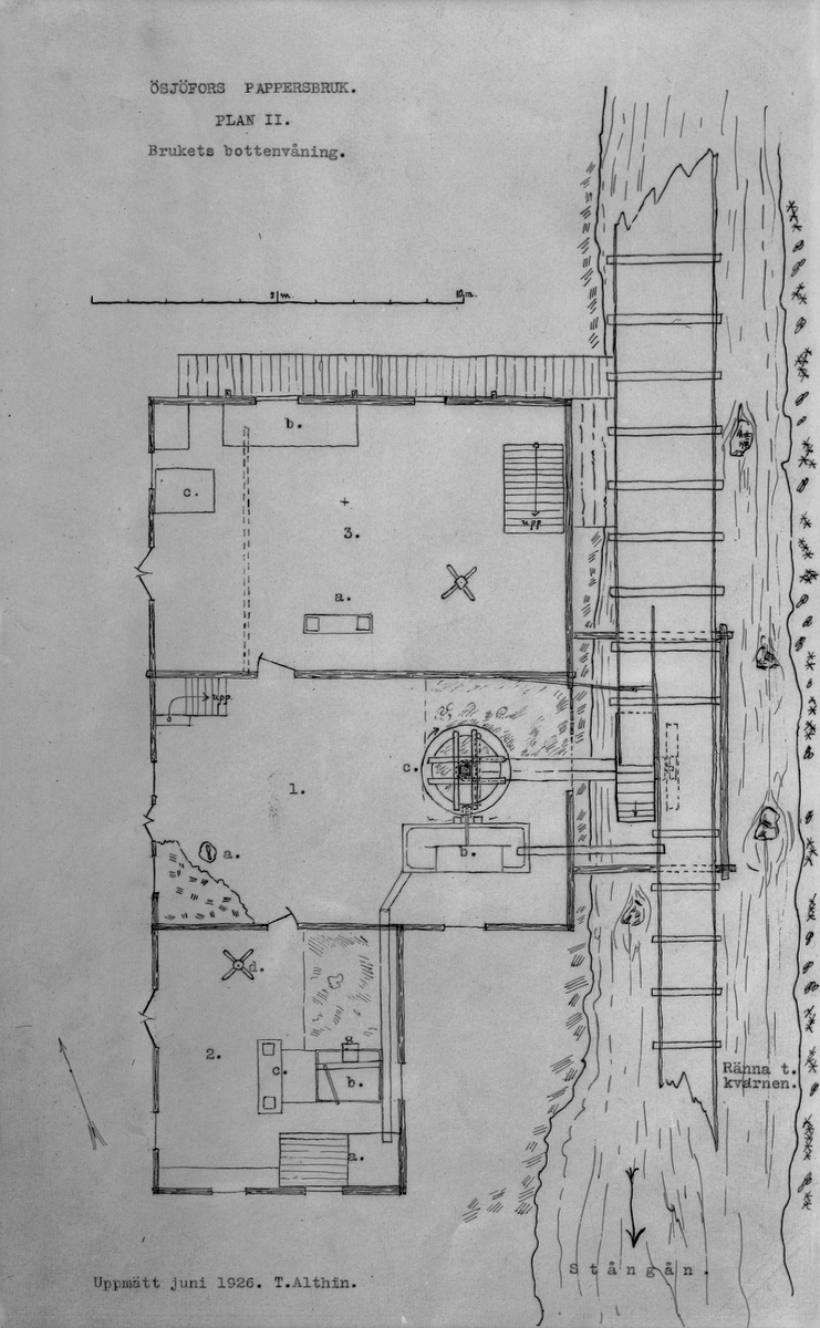 Planritning. Plan II över Ösjöfors Handpappersbruks bottenvåning.