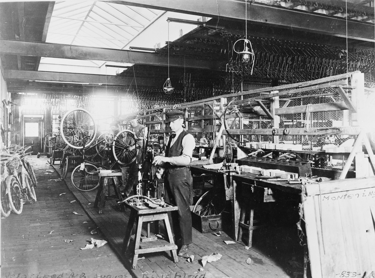Montering av cyklar. Verkstad vid Velociped AB Lindblad.