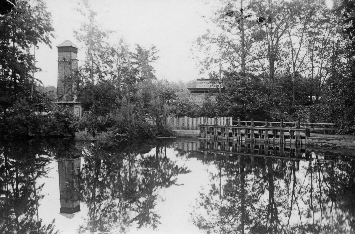 "Smeddammen", med den avtagna, och till elektrisk transformator inredda martinskorstenen.