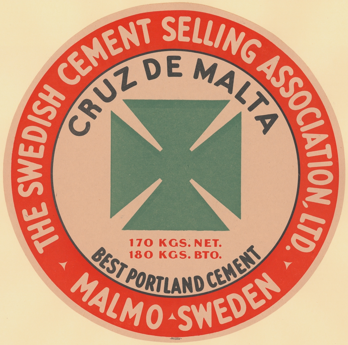 Fabriksmärke för cementpåsar. The Swedish Cement Selling Association. Best Portland Cement.