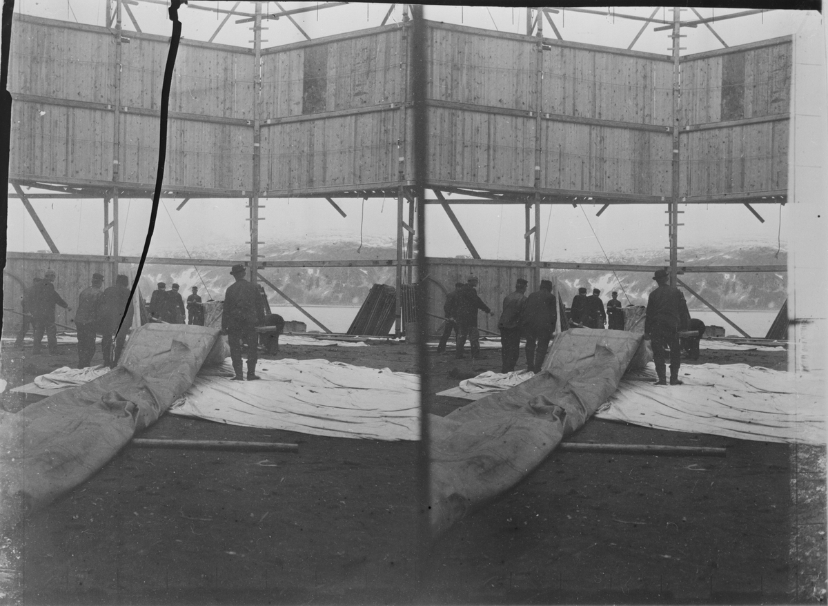 Stereobild, ballongen förberedes för gasfyllning.