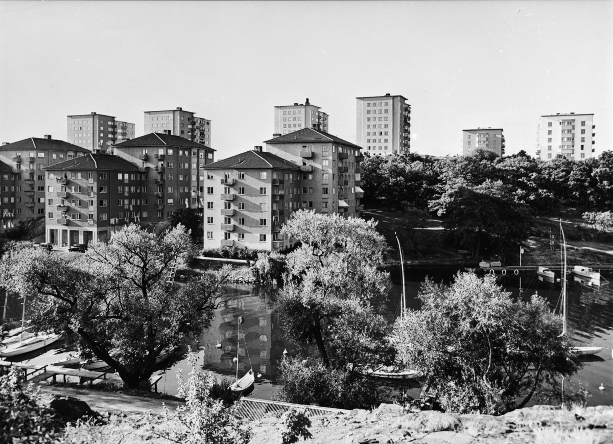 Byggherre: Byggnadsaktiebolaget Contractor, Stockholm. Vy över 1200 lägenheter som Contractor byggde för HSB. Arkitekt SAR Sven Wallander.