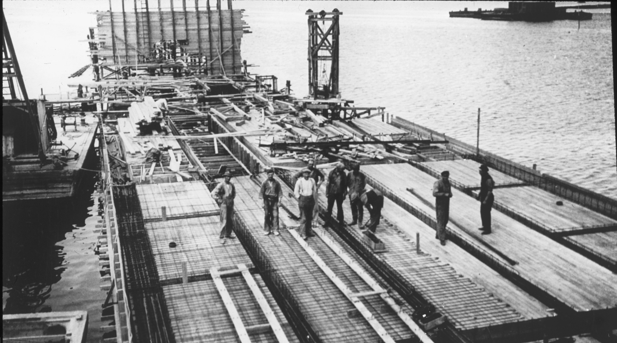 Byggherre: Byggnadsaktiebolaget Contractor, Stockholm. Den 200 m långa och 13,5 m breda pirbyggnaden i Vallvik för Marmaverken var imponerande också med avseende på det stora vattendjupet (10 m).
