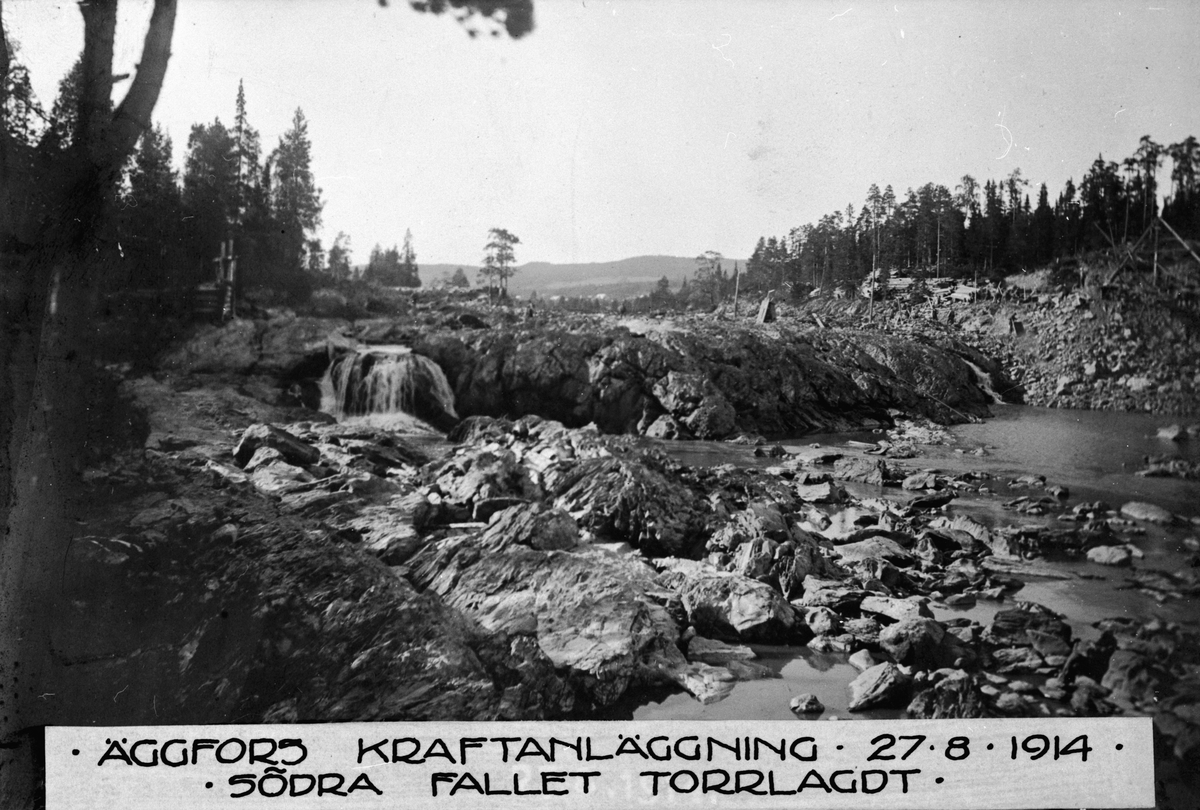 Byggherre: Byggnadsaktiebolaget Contractor, Stockholm. Kraftanläggning. Södra fallet torrlagd.
