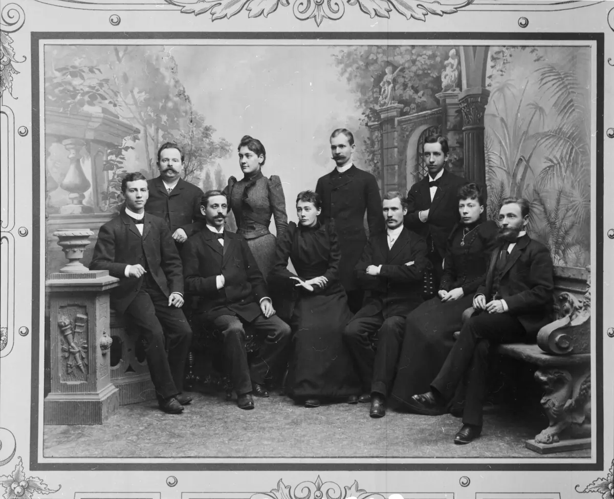 Stråhattfabriken."Till minne af 25-årigt Affärsjubileum 1868 1/1 1893". Med gulbokstäver står det "Kongl. Hovleverantör Otto Billberg" på pärmen. Ett gruppfotografi (chefer?).