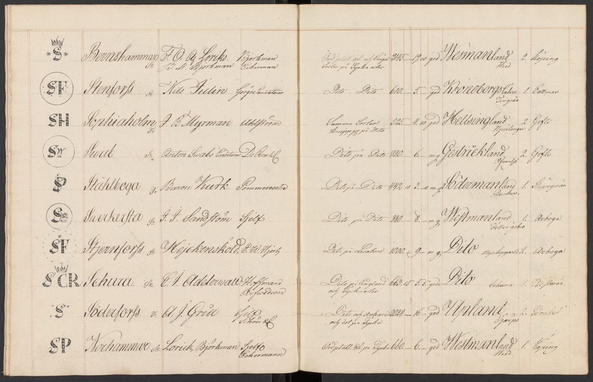 Titel: Stämpelbok vid Stockholms stora metall- och järnvåg inrättad år 1813. Handskrift. Ur Carl Sahlins bergshistoriska samling.