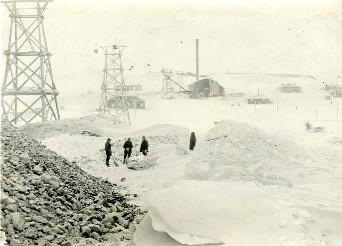 Sveagruvan. Transport av snöanhopningar vid kolupplaget.