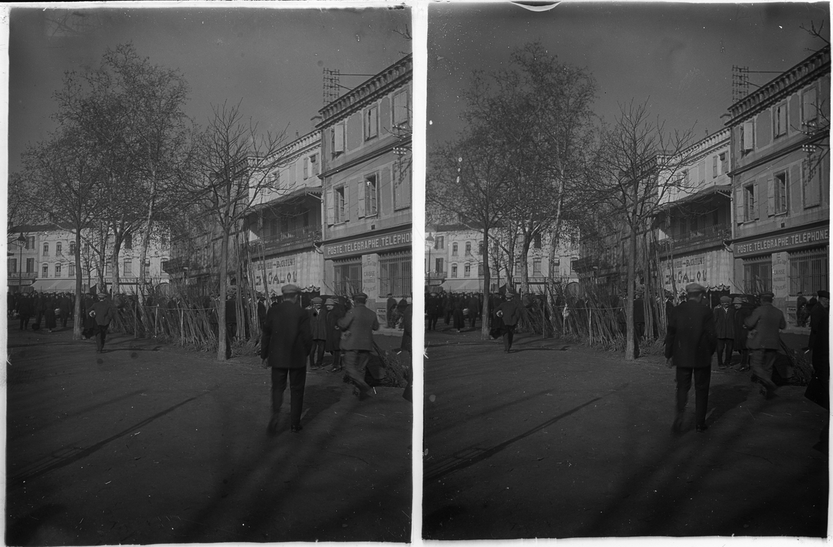 Stereonegativ, stadsbild. Möjligen i Frankrike.