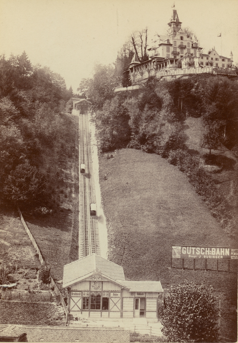 Bergbanan "Gutschbahn" upp till Château Gütsch, Lucerne (Luzern), Schweiz.
