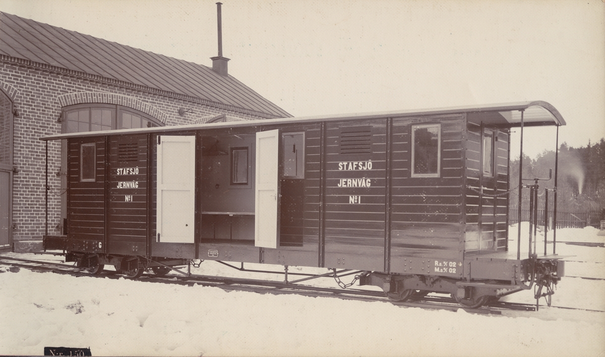 Tågvagn. Boggiegodsvagn. Lit. G. Ur album för Vagnfabriks Aktiebolaget i Södertälge.