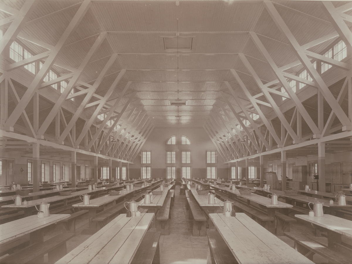 Matsal vid Uppsala kasernbyggnad, 1912.