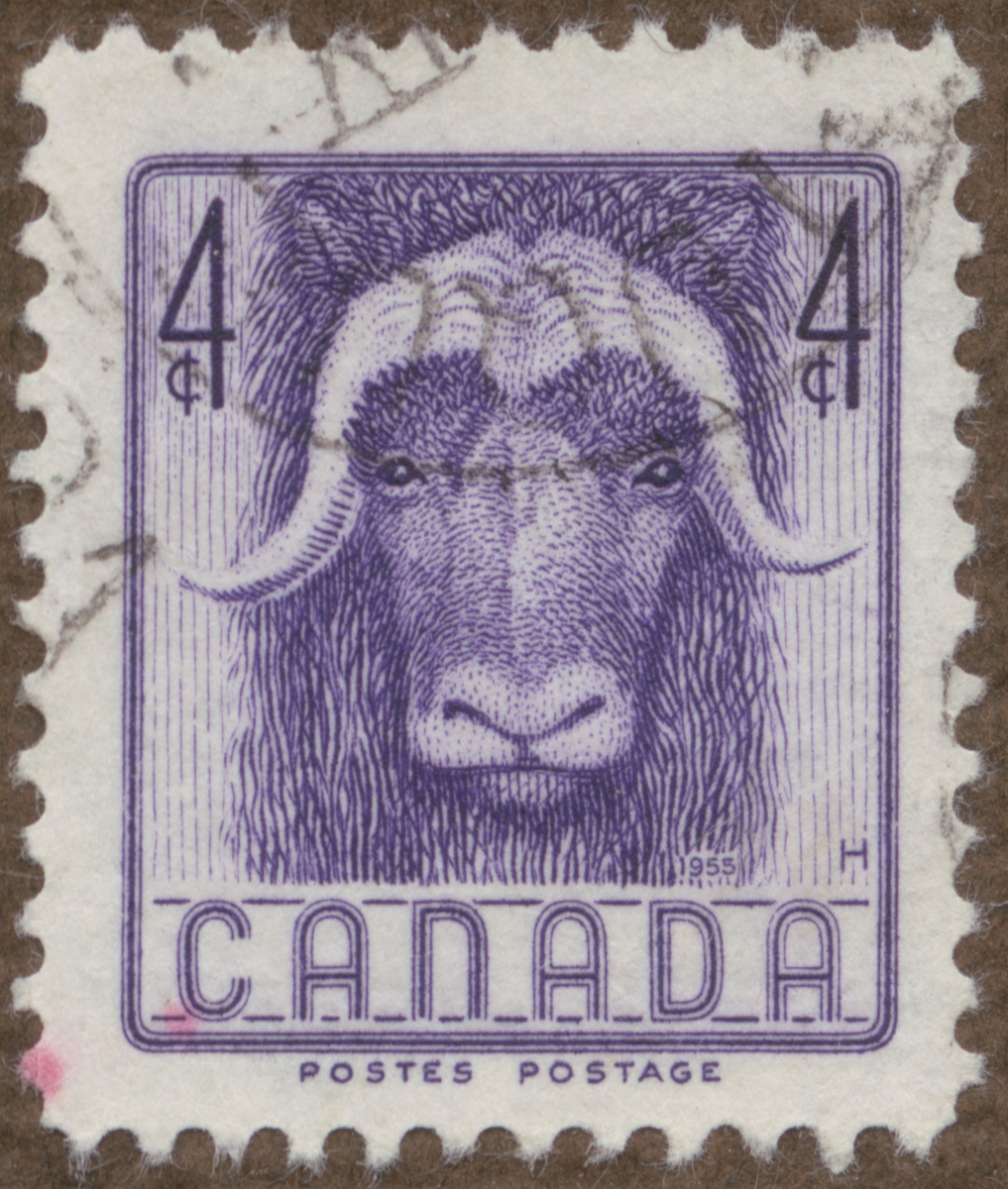 Frimärke från Canada, 1953. Motiv av Myskoxe