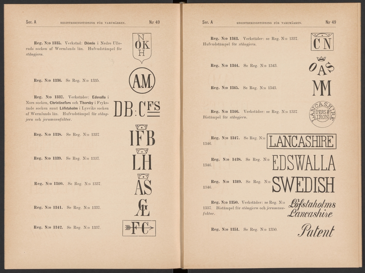 Registreringstidning för varumärken 1885. Serie A, Svenska järnstämplar.