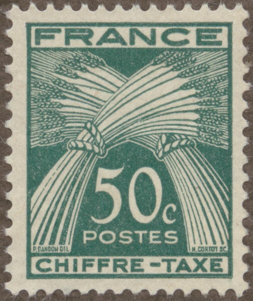Frimärke från Frankrike, 1943. Motiv av Sädeskärvar Symbol för lantbruket