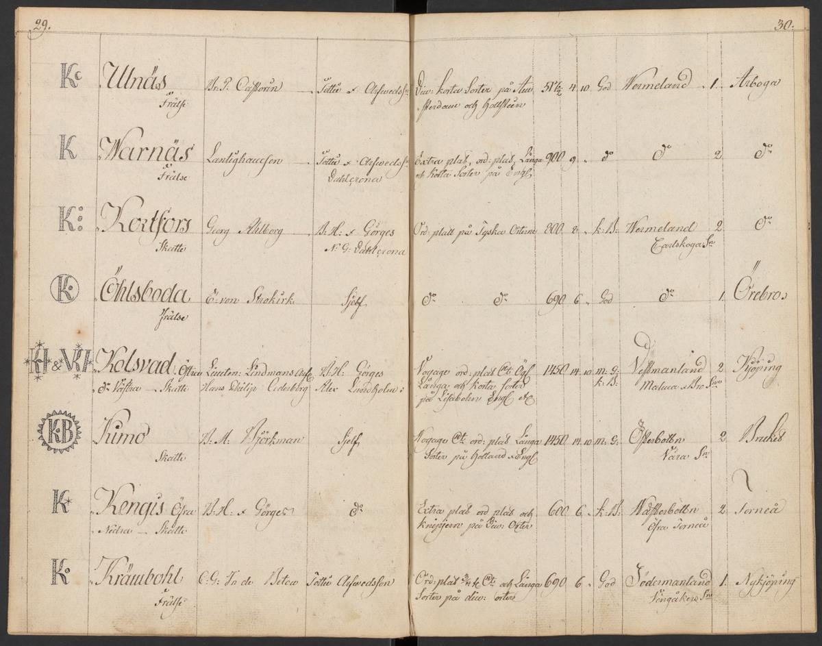 Titel: Stämpelbok vid Stockholms stora järn- och metallvåg inrättad år 1794. Handskrift. Ur Carl Sahlins bergshistoriska samling.