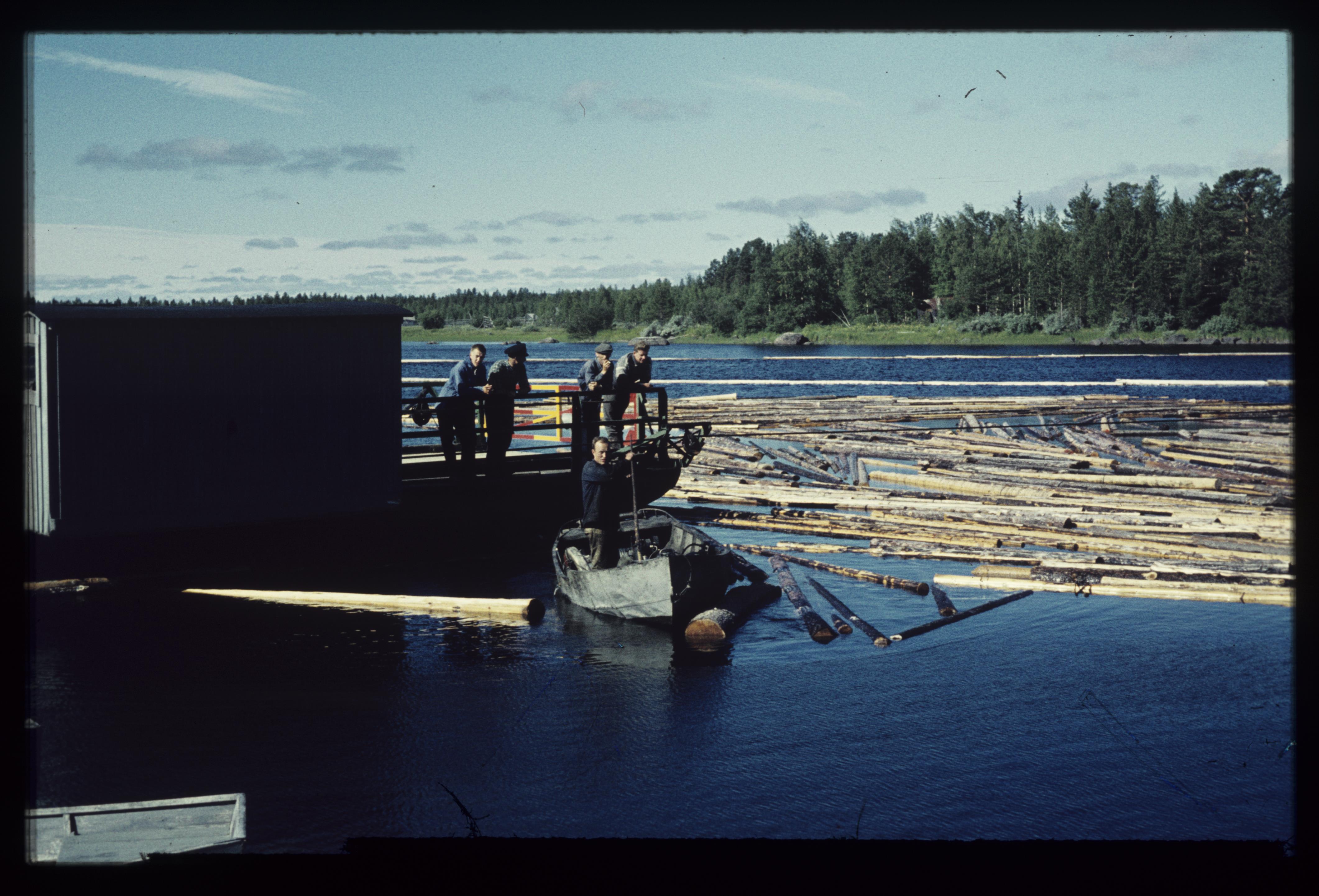 Flottning och timmer i Ångermanälven vid Hällaström.