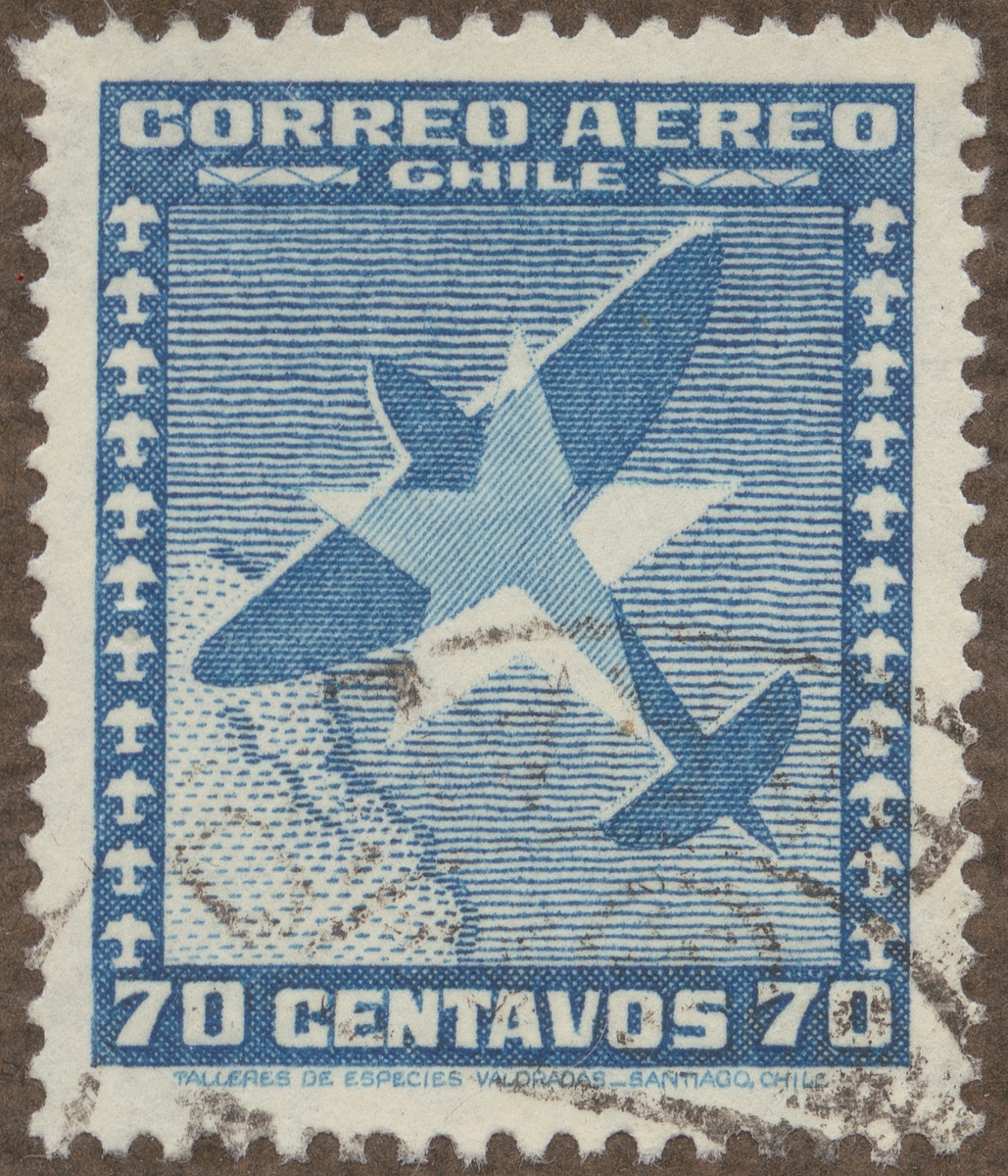 Frimärke från Chile, 1934. Motiv av Monoplan Stjärnan i Chiles Vapen