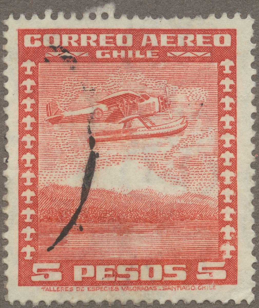 Frimärke från Chile, 1934. Motiv av Chilenskt hydroplan