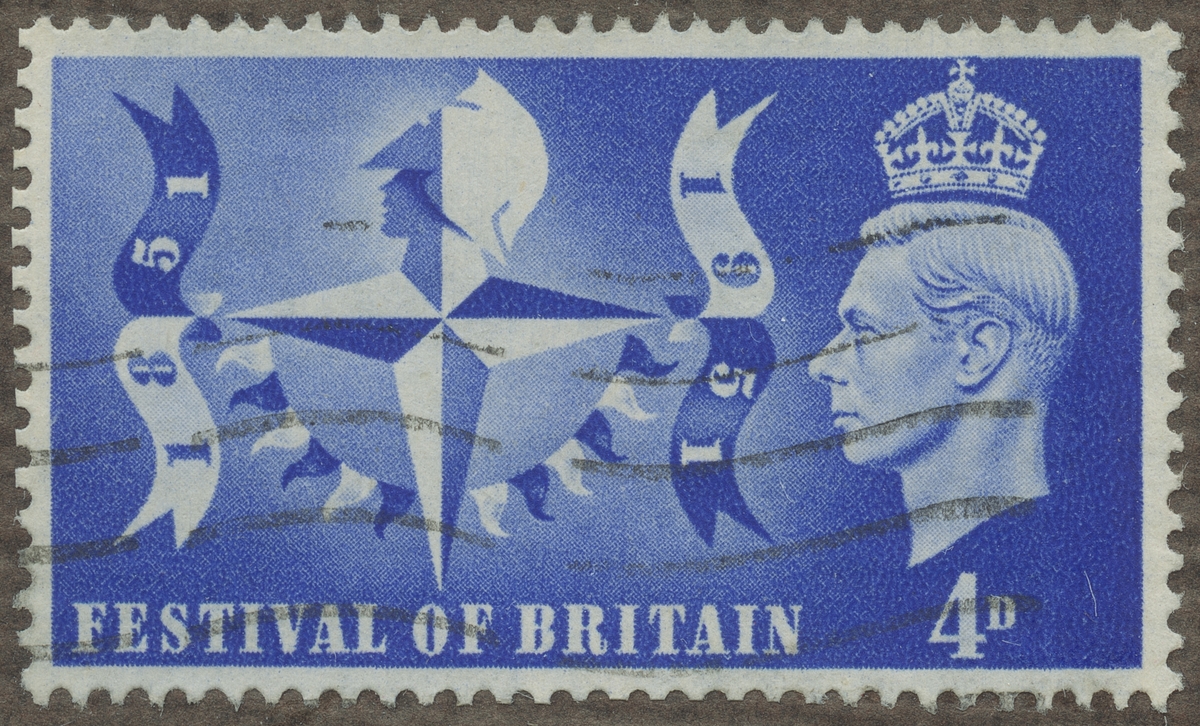 Frimärke från England, 1951. Motiv av Symbol 100-årsutställningen i London festival 1851-1951.