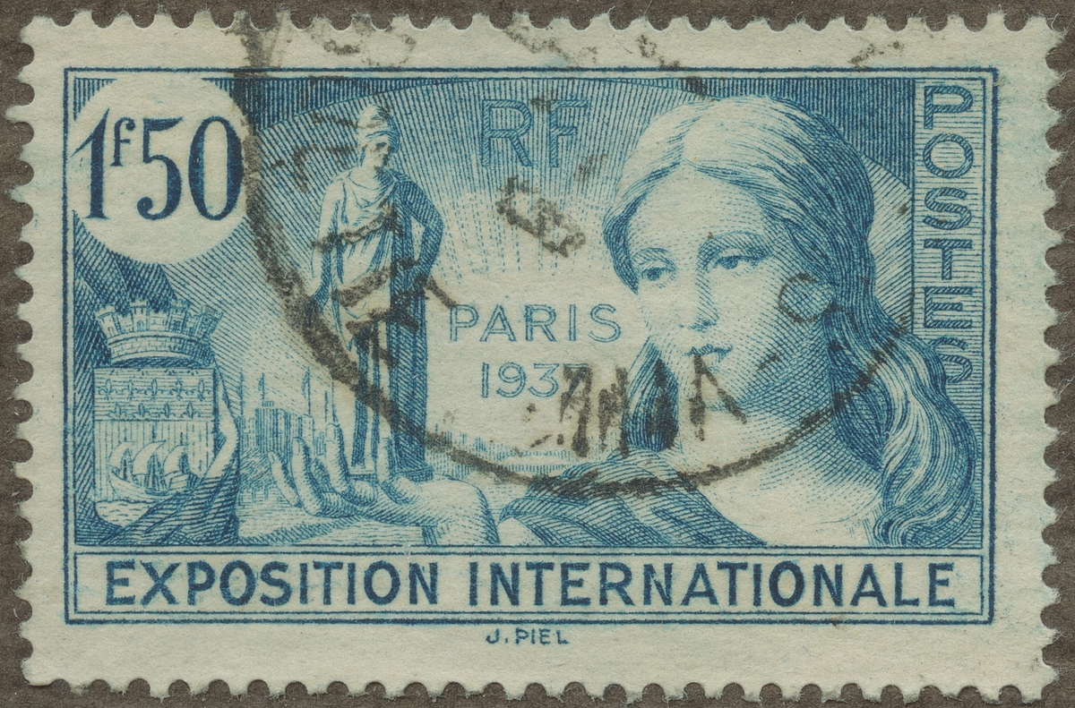 Frimärke från Frankrike, 1937. Motiv av Propaganda för internationell utställning i Paris 1937.