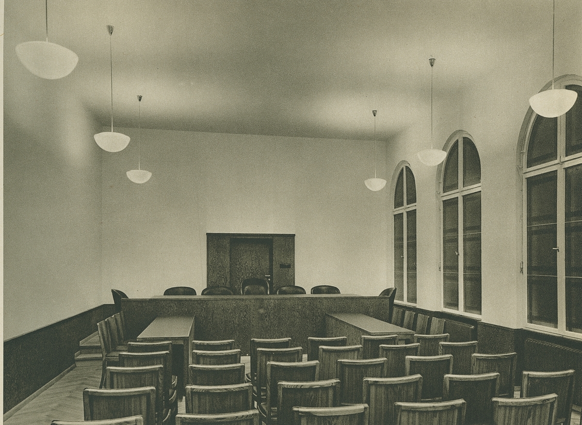 "Ehrengerichtssaal", Haus des Deutchen Handwerks, Berlin, Indirekt-Spiegelleuchten HG 11 zu 150 watt".