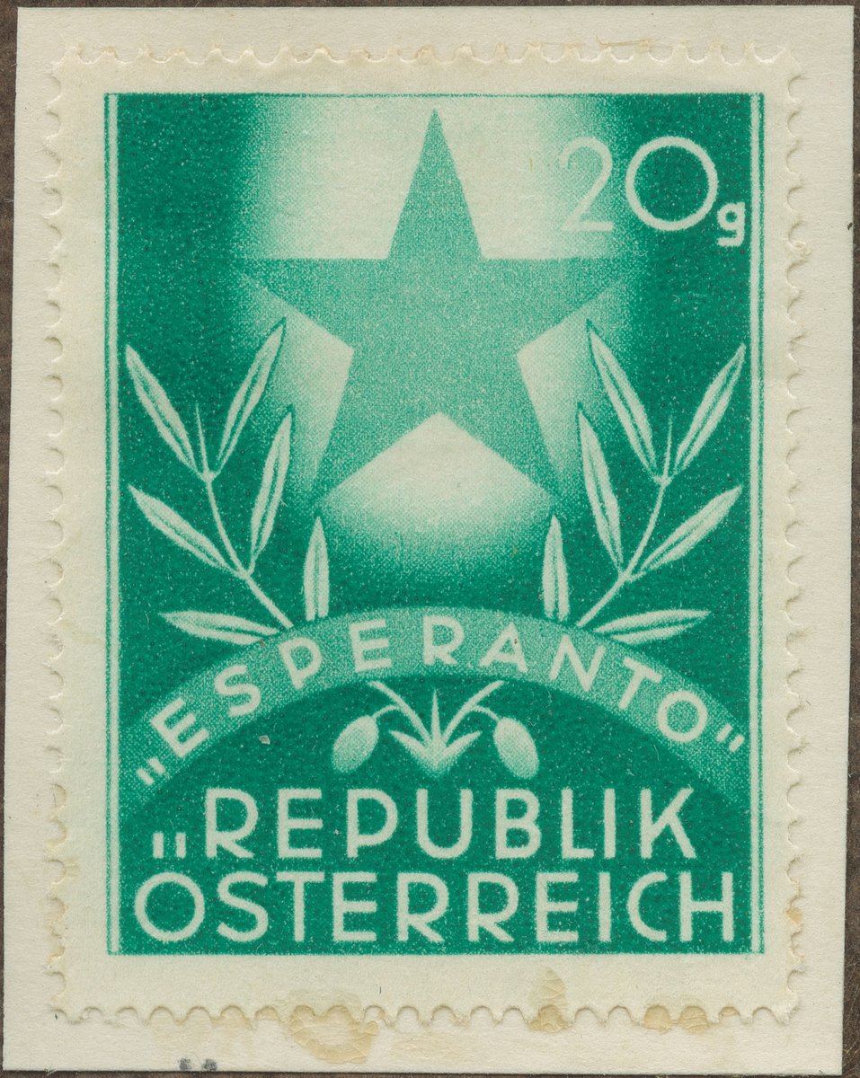 Frimärke från Österrike, 1949. Motiv av Femuddig Stjärna "Esperanto"