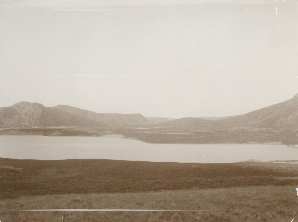 Fotografi från expedition till Grönland. Vy över havsremsa och berg.