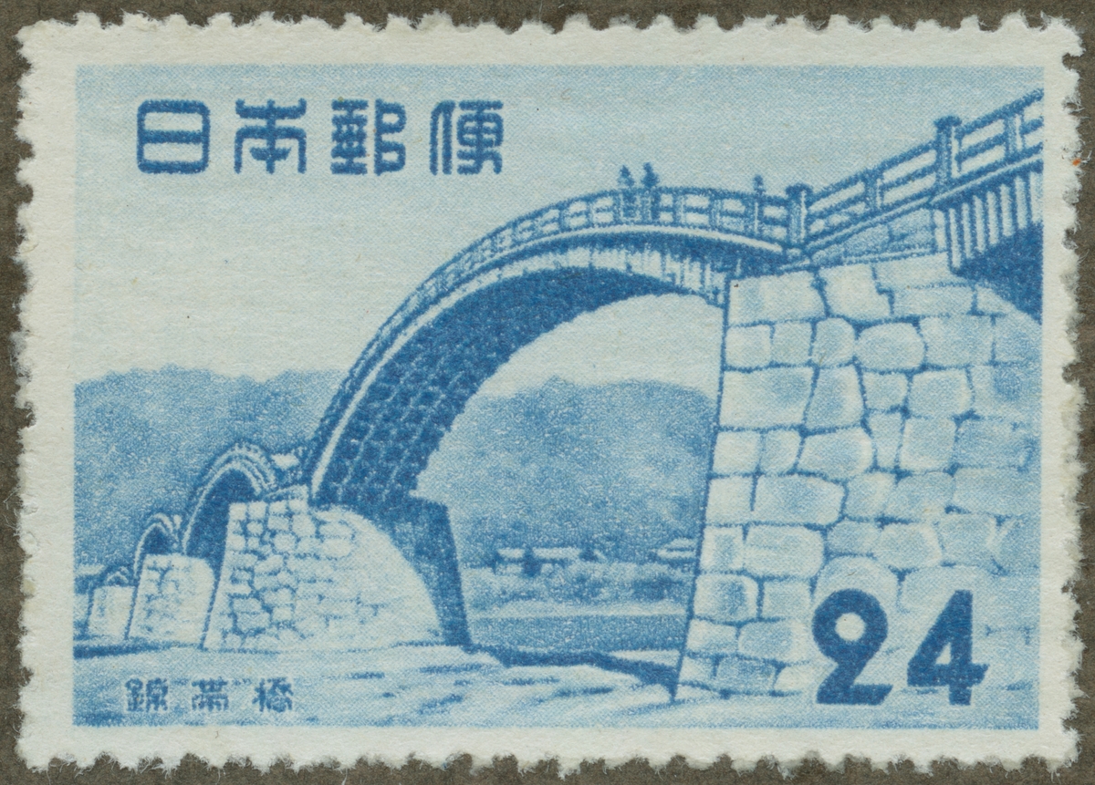 Frimärke från Japan, 1953. Motiv av Den nya bron vid Kintai