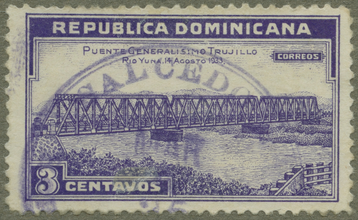 Frimärke från Dominikanska republiken, 1934. Motiv av Storfackverksbro "Generalissime Trujillo", på ön Haiti (Dominikanska republiken) i Västindien.