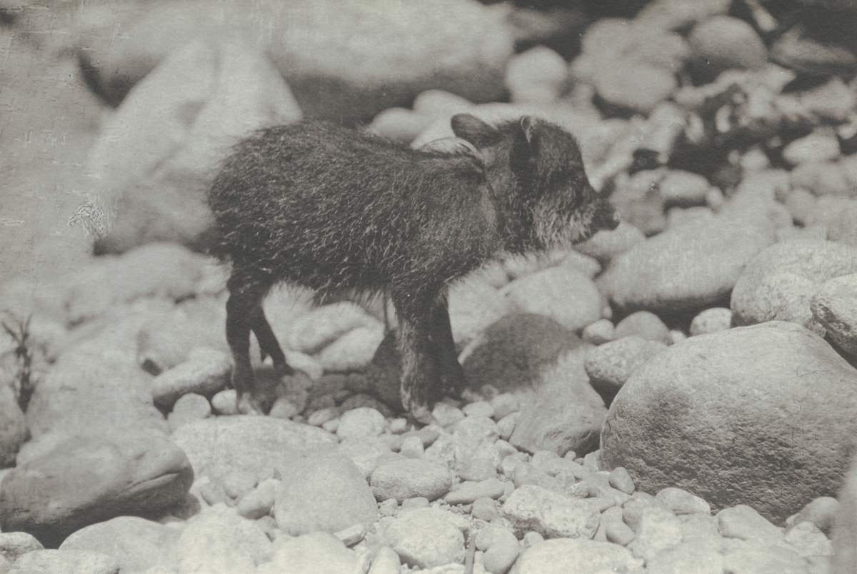 Fotografi från kuvert märkt med "Ernst Nordenskjöld". Motiv av vildsvinskulting.