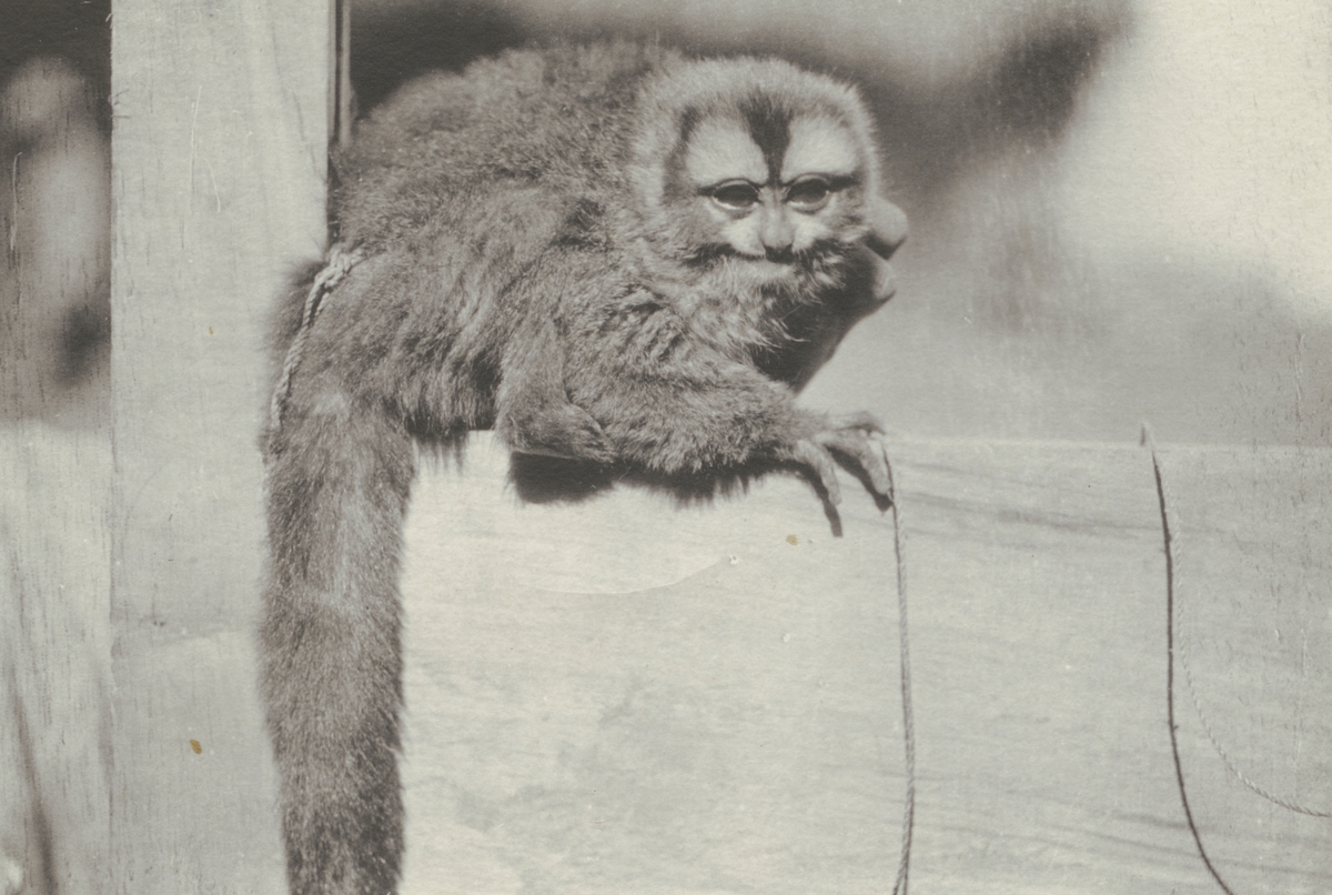 Fotografi från kuvert märkt med "Ernst Nordenskjöld". Motiv av liten primat.