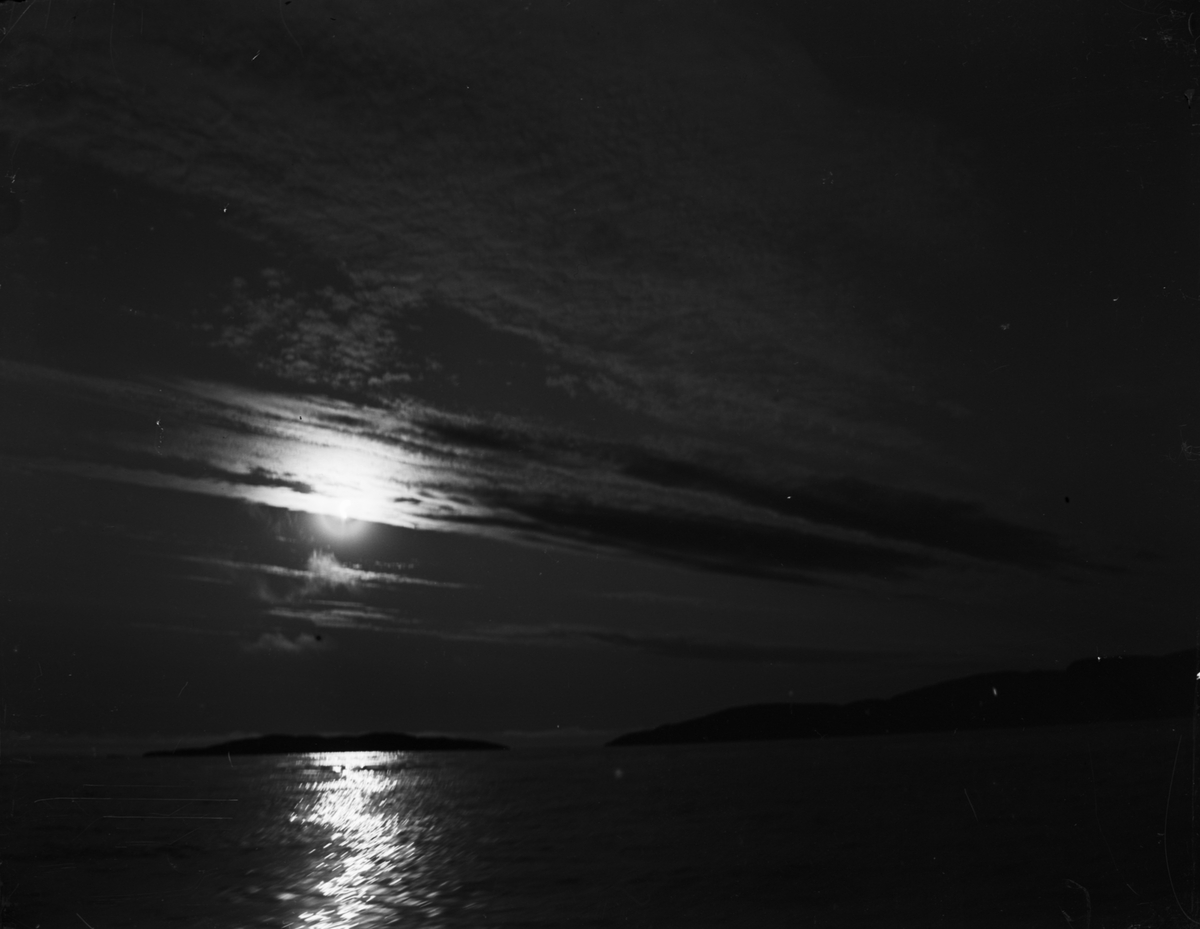 Fotografi från Grönland. Motiv av månljus som reflekteras i havet.