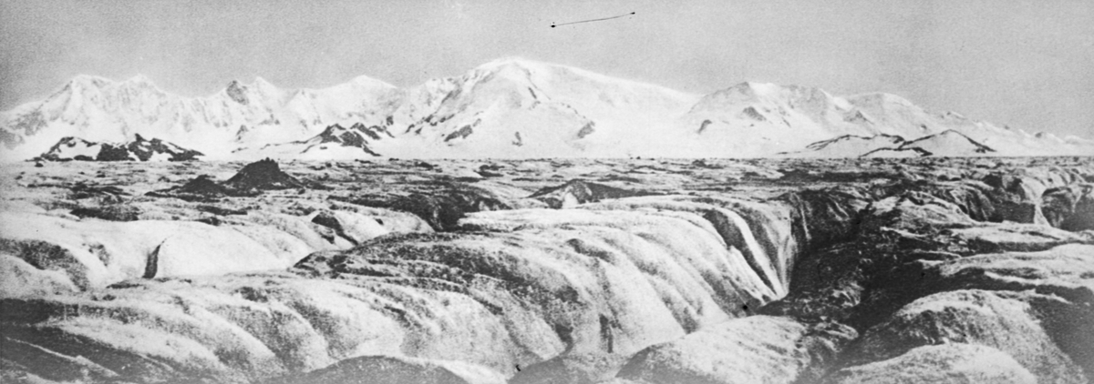 Fotografi från Eldslandet. Motiv av bergslandskap täckt av is.