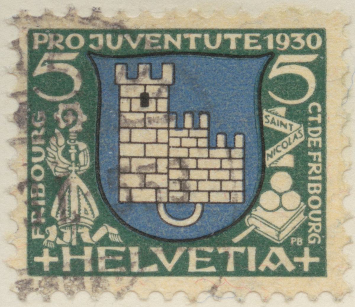 Frimärke från Schweiz, 1930. Motiv av Freiburgs Vapen Pro Juventute 1930