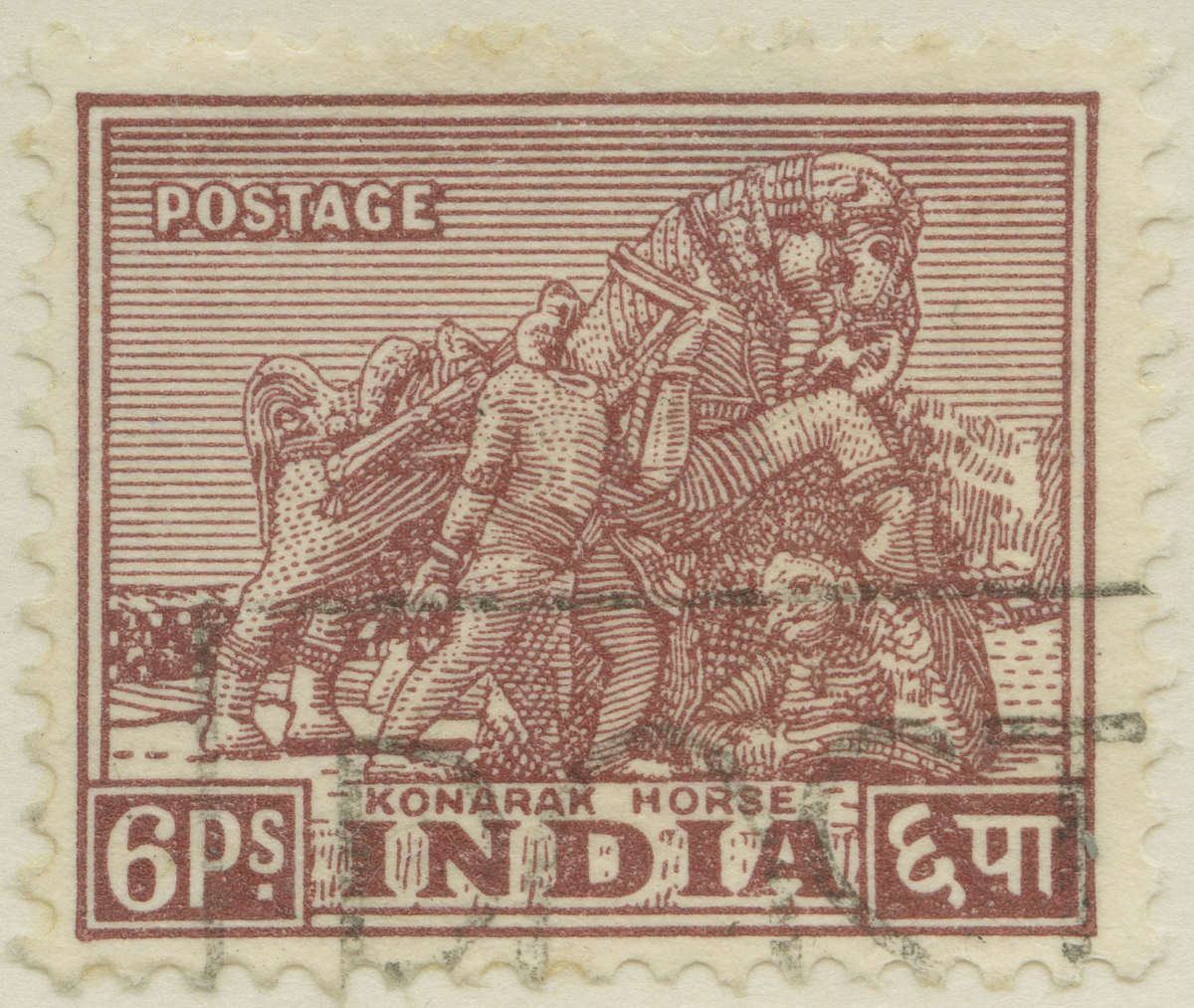 Frimärke från Indien, 1949. Motiv av "Konarak" Den historiska Hästen