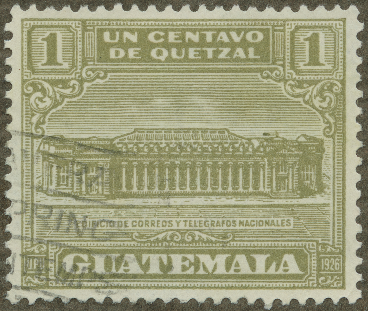 Frimärke från Guatemala, 1927. Motiv av Förslag till Nytt centralpostdepartement i Guatemala