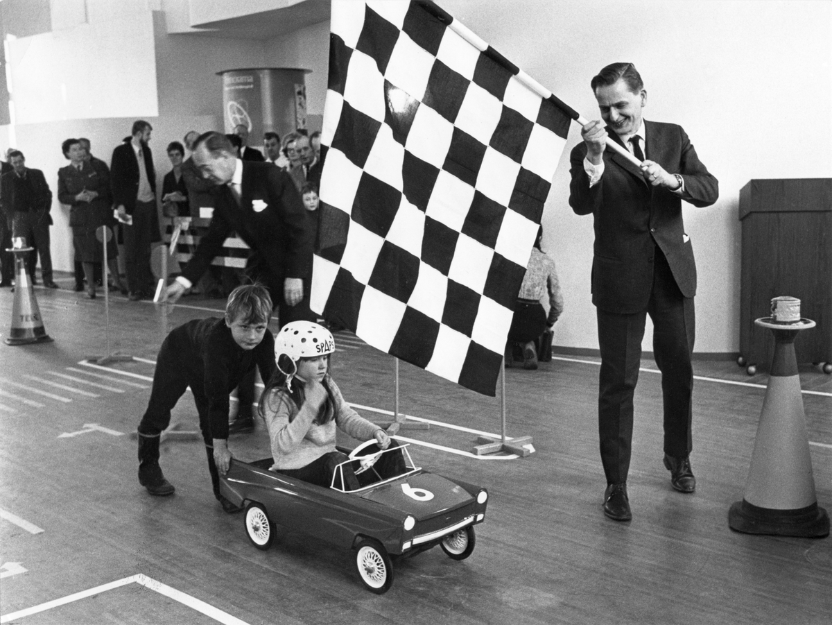 Kommunikationsminister Olof Palme invigde 10 februari utställningen Go-Cart 1966 i Teknorama, Tekniska museet.