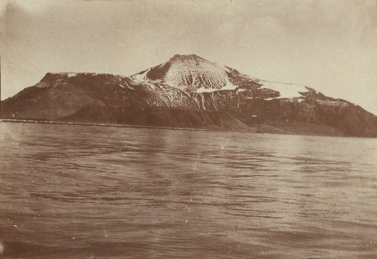 Fotografi från första svenska Antarktisexpeditionen 1901-1904. Vy över hav, snötäckt berg och himmel.