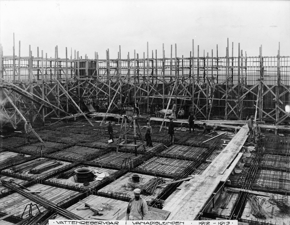 Titel: Byggherre: Byggnadsaktiebolaget Contractor, Stockholm. Vattenreservoar i Vanadislunden.