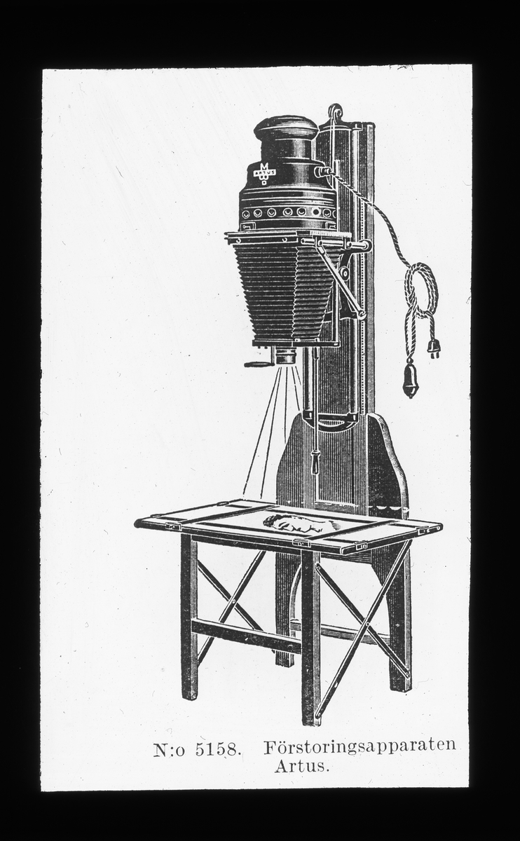 Skioptikonbild från Institutionen för fotografi vid Kungliga Tekniska Högskolan. Använd av professor Helmer Bäckström som föreläsningsmaterial. Bäckström var Sveriges första professor i fotografi vid Kungliga Tekniska Högskolan i Stockholm 1948-1958.
