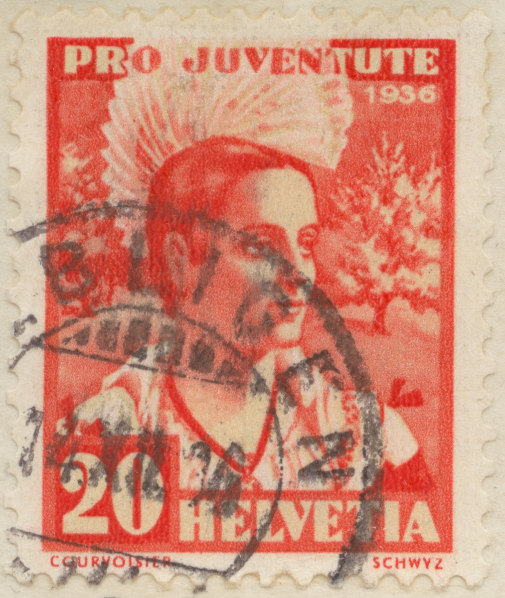 Frimärke från Schweiz, 1936. Motiv av kvinnodräkt: Schwyz.