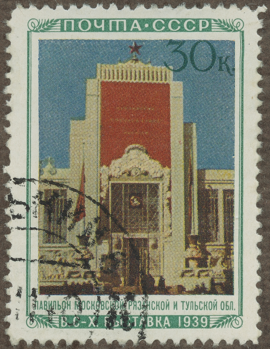 Frimärke från Ryssland, 1940. Motiv av Agrikulturutställning i Ryssland 1940 Paviljongen: De tre centralprovinserna