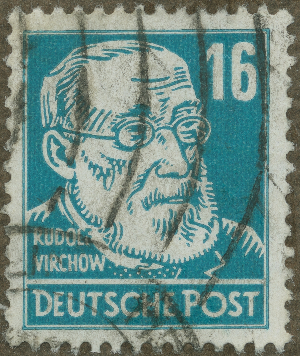 Frimärke från Tyskland, 1948. Motiv av Rudolf L. K. Virchow: 1821-1902. Framstående tysk anatom. Fysiolog. (Märke utg. under den ryska okkupationen av Tyskland)
