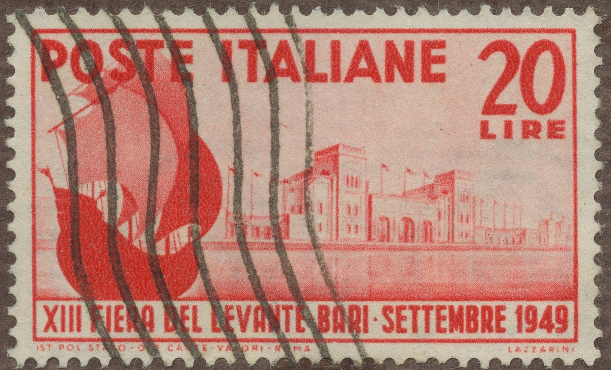 Frimärke från Italien, 1949. Motiv av 13-de mässan i Bari 1949