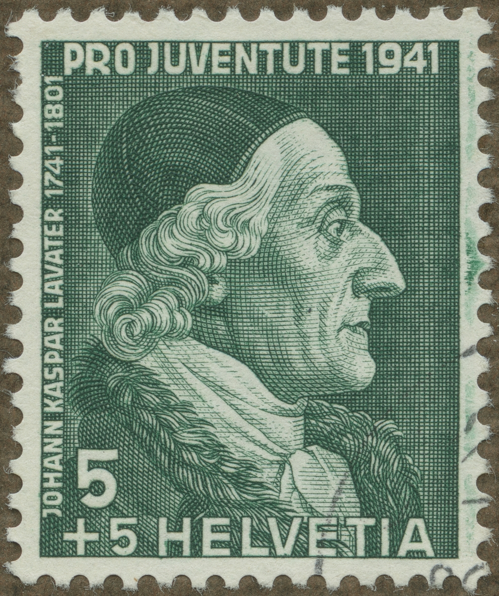 Frimärke från Schweiz , 1941. Motiv av Johann Kaspar Lavater 1741-1801 Försök till vetenskaplig fysionomik