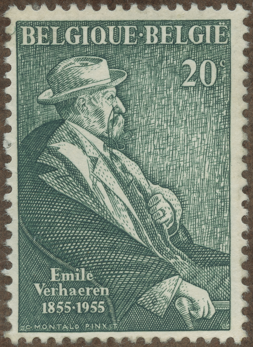 Frimärke från Belgien, 1955. Motiv av Emile Verhaeren 1855-1916 Belgiens störste lyriker 100-årsminne av hans födelse 1855-1955.