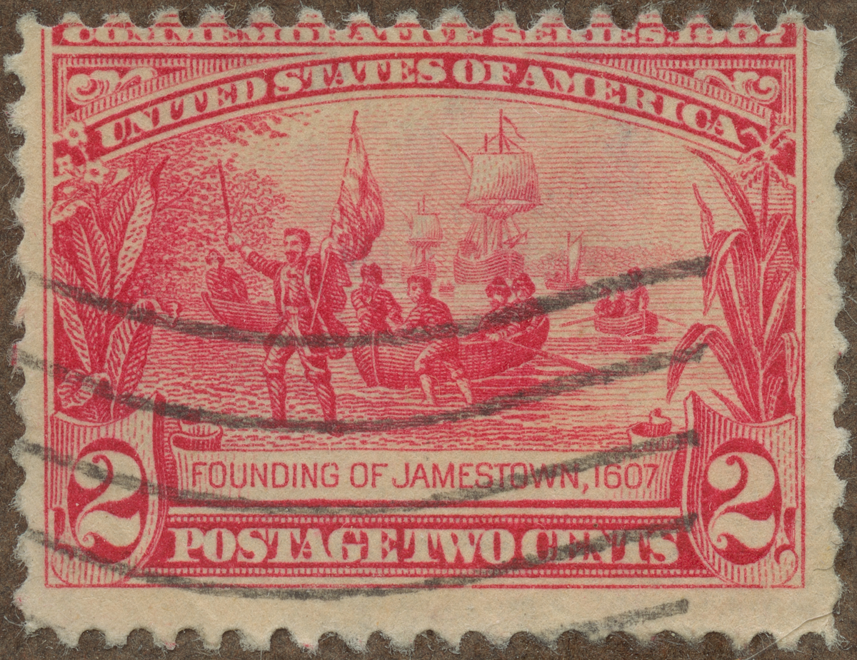 Frimärke från U.S.A., 1907. Motiv av Grundandet av Jamestown-Virginia 1607 300-årsminne