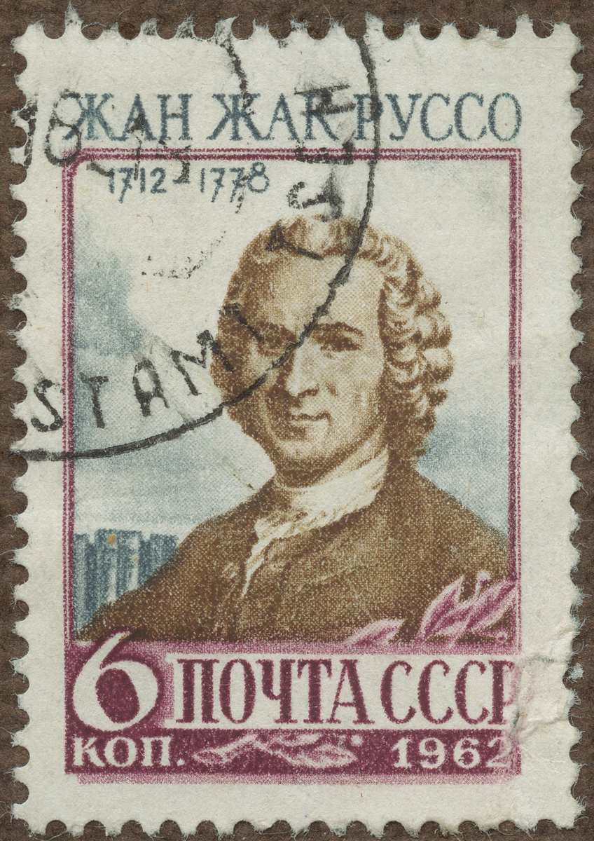 Frimärke från Ryssland, 1962. Motiv av Jean Jaques Rousseau f. 1712 d. 1778 Schweizisk-fransk författare Till 250-årsjubileet av hans födelse 1712-1962.