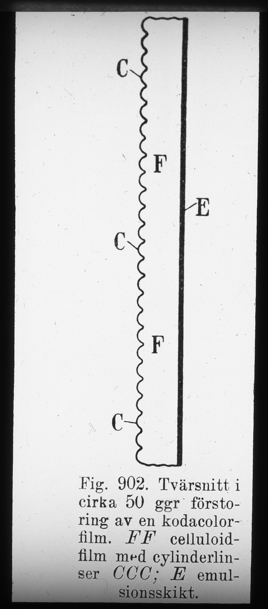 Skioptikonbild från Institutionen för fotografi vid Kungliga Tekniska Högskolan. Använd av professor Helmer Bäckström som föreläsningsmaterial. Bäckström var Sveriges första professor i fotografi vid Kungliga Tekniska Högskolan i Stockholm 1948-1958.